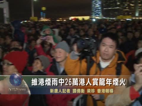 共有26萬名市民於維港兩岸欣賞煙花。有維港海旁的商場,開放露天停車場供市民看賀歲煙花。市民穿上厚衣服,並帶備雨具,煙雨中準備欣賞煙花。