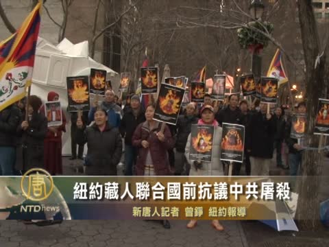 【新唐人2012年1月28日訊】四川傳出消息,一名20歲的藏人烏根(Urgen),26號在阿壩的壤塘縣,被中共當局開槍打死。1月27日(星期五),近百名紐約藏人到聯合國總部前,抗議發生在西藏的新一輪鎮壓和屠殺,呼籲聯合國和國際社會正視西藏人民的苦難,避免更多無辜的人失去生命。請看本臺記者曾錚的報導。