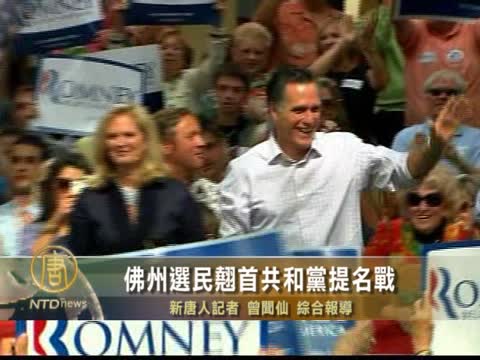【新唐人2012年1月30日訊】美國共和黨競爭提名的羅姆尼和金里奇兩人之一很可能會在11月的總統大選中和競選連任的奥巴馬總統對決。距離共和黨在佛羅里達州的初選還有兩天時間,調查顯示佛州居民對大選前景各有展望。