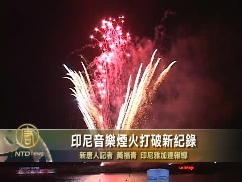 【新唐人2012年1月30日訊】海外華人在世界各地的慶祝新年的活動多種多樣,美麗的煙火是每年必不可少的。印尼雅加達安照(Ancol)海邊的煙火又有甚麽不同呢?今年的煙火比去年的記錄要長,達到25分鐘,並伴隨著音樂變幻不同的花樣,看過音樂噴泉的人們,讓我們去印尼雅加達看看這不同的新年音樂煙火吧。