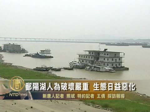 【新唐人2012年1月31日訊】中國第一大淡水湖,鄱陽湖持續維持低水位,由於人爲開發侵佔嚴重,加上修建很多水電站,非法捕撈、非法採砂、非法排污等威脅使生態環境日益惡化。中國著名環保人士楊勇認爲,限制不合理的開發行為才會從根本上解決問題。