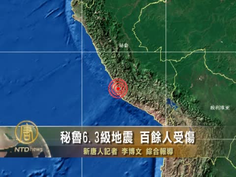 【新唐人2012年1月31日訊】秘魯中部的埃卡市附近當地時間30日凌晨發生裡氏6.3級地震,目前已經造成大約一百多人受傷。