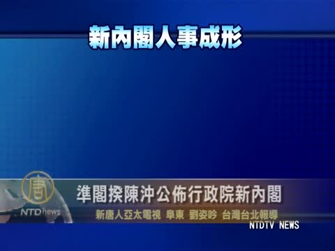 【新唐人2012年1月31日訊】中華民國行政院內閣人事31號由準閣揆陳沖對外正式公布。一半以上的部會首長繼續留任,而新面孔,包括之前投入嘉義立委選舉的陳以真,擔任青輔會主委。另外還延攬了前GOOGLE亞太營運總監張善政,出任政務委員。對於新內閣人事佈局,陳沖說一切以「適才適所」作為內閣人事安排的考量。