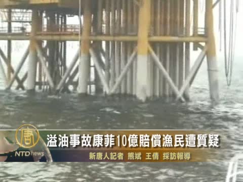 【新唐人2012年2月1日訊】受到各界關注的中國渤海灣溢油事故賠償問題。今年1月25日,農業部與中海油和康菲這兩家公司達成協議,由康菲公司賠償漁民10億元人民幣。海商法專家單紅軍教授認為,這個協議對養殖戶沒有意義,因為事故的全部訊息和10億元的計算標準沒有披露,還有農業部是否有權代表受損漁民都受到質疑。