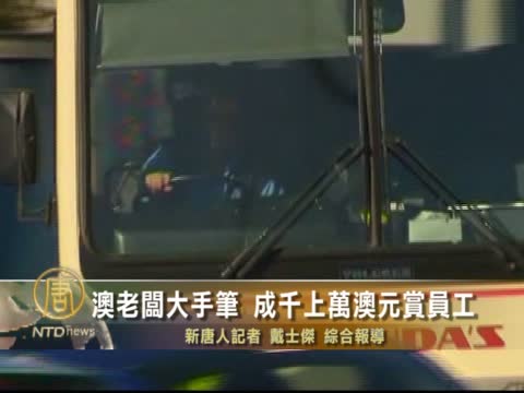 【新唐人2012年2月1日訊】澳大利亞墨爾本一間運輸公司的老闆,星期三,將公司出售後所得利潤的一部分分賞給員工,平均每人都拿到數千澳元獎金。