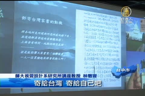 【新唐人亞太台2012年2月2日訊】接到家書時的感動,是否還讓您記憶猶新?享有「台灣設計界導師」之稱的林磐聳教授,從2007年起,在全球各地旅程中,將明信片寄給台灣,寄給自己,用郵戳上的「時間」與「地點」繪寫想念台灣的家書。東海大學藝術中心正展出他歷年知名的平面設計海報和380餘封「台灣家書」,希望讓大家看見台灣、用生命書寫台灣。