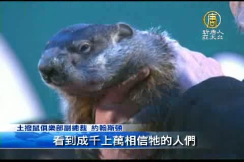 【新唐人亞太台2012年2月3日訊】嚴寒的天氣,特別讓人盼望春天的到來。2月2日是美國的土撥鼠日,美國賓夕法尼亞州小鎮的著名土撥鼠菲爾預測,距離春天來臨,還有6個星期。