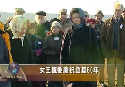 【新唐人2012年2月4日訊】2月3日(星期五),英國女王伊麗莎白二世在女兒安妮公主的陪伴下,來到諾福克郡的桑德靈厄姆(Sandringham)莊園,種下一棵橡樹,以此紀念自己登基60週年。