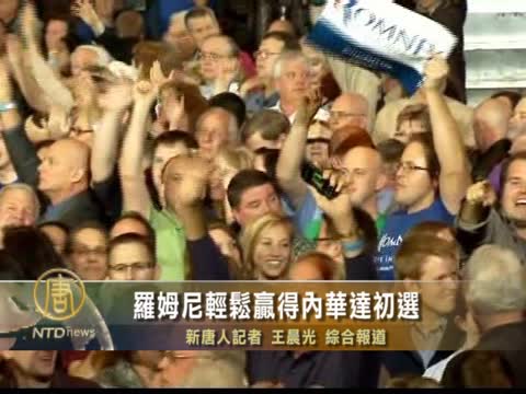 【新唐人2012年2月5日訊】2月4號(星期六),美國共和黨黨內初選大熱門羅姆尼,繼佛州大勝之後,再下一城,輕鬆獲得內華達州的初選勝利,獲得了該州44%的黨代表票,領先最接近的對手金里奇近20%,保羅排在第三位。不過金里奇毫不氣餒,誓言決不放棄,將會競爭到共和黨大會為止。