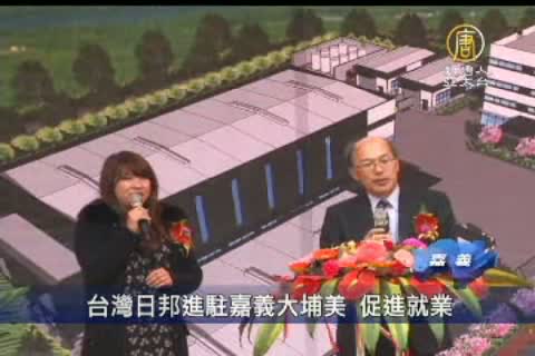【新唐人亞太台2012年2月5日訊】生產環保型水性接著劑等產品的台灣日邦樹脂公司,和日本合資技術合作,進駐嘉義縣大埔美精密機械園區,3號動工建廠,將分2期投資5億元興建研發中心及廠房,預計明年初量產,可增加在地就業機會約100人。
