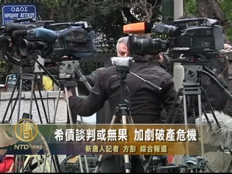 【新唐人2012年2月6日訊】在歐元區財長週六對希臘改革表示挫折並有意放棄對希臘的金融救援後,希臘總理帕帕季莫斯和歐盟、歐洲央行及國際貨幣基金組織組成的檢查小組(Troika)的談判失敗的風險已經像走在刀尖上一樣。希臘財長警告國民說,讓希臘能留住歐元區的會談必須在幾個小時內獲得成果。