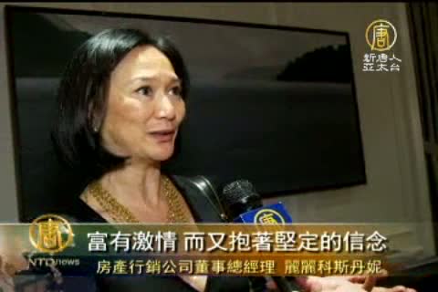 【新唐人亞太台2012年2月7日訊】來看到神韻藝術團演出的最新情況。2月5日,美國神韻紐約藝術團在溫哥華結束了最後一場演出。當地一家著名房產行銷公司總經理,感動的向我們的記者表示,她從神韻的演出中,感悟到了超越生命的啟示。