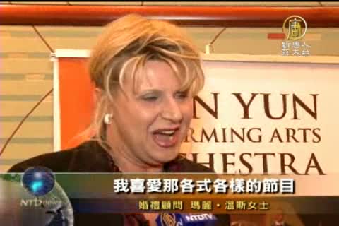 婚禮顧問瑪麗˙溫斯女士(Mary Verns,wedding consultant)喜愛神韻的服裝設計、不同的舞蹈和主持人的介紹:「服飾很奇妙。我喜愛那各式各樣的節目。我也喜歡主持人在每個節目之前的介紹。」