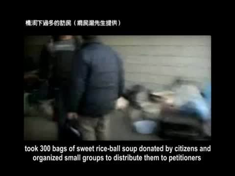 「元宵節」當天,北京民間組織「公盟」義工,帶著熱心者捐助的一車300袋湯圓,分成幾個小組到北京南站附近、永定門橋下、開陽橋下等訪民聚居的地下通道,向因上訪而無法與家人團聚的訪民送上湯圓。
