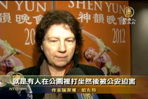 作家瑞潔娜.哈克特:「這個演出有很豐富的歷史內涵,神韻演員已經成為藝術家。中共並不能代表中國人,而神韻展現的是真正中國人的美,這很好。」