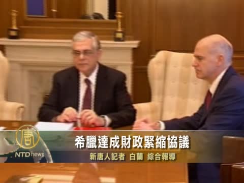 【新唐人2012年2月10日訊】希臘領導人星期四最終就國際借貸方要求實施的緊縮措施達成協議,這樣希臘就能夠獲得下筆1300億歐元的救助貸款,從而避免下個月出現債務違約。
