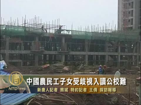 【新唐人2012年2月10日訊】中國大量的農民進城打工,已逐漸成爲城市産業工人的主體。但是政策上的歧視,包括子女就近入讀公立學校難,以及高考與戶籍制度掛勾等問題,讓農民工難以融入城市。北京工業大學人文學院法律系教授張荊建言讓農民工的子女在城市上公立學校,並改革高考應試制度,以減少城市歧視。