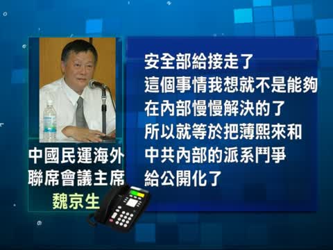 中國民運海外聯席會議主席魏京生:「薄熙來從前年李莊的案子開始,他跟北京官場上的很多派系都已經形成了對立的狀態。其實在北京的官場圈子裡,討厭薄熙來或者想整薄熙來的人非常多。不是從現在才開始,是從去年開始,就有人針對薄熙來了,就已經在調查王立軍了。是經過了一年的調查之後,才把王立軍的事情證據弄確鑿了。所以這說明中共的內鬥已經越來越激烈了。所以這回薄熙來肯定是日子不好過了。」