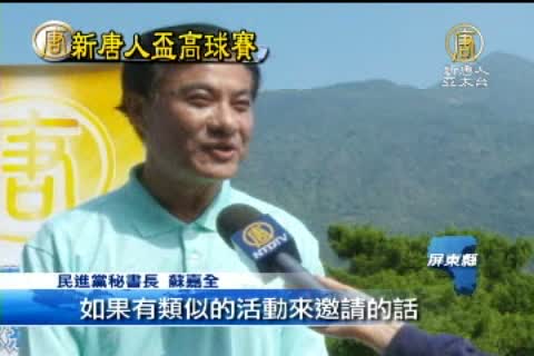 【新唐人亞太台2012年2月12日訊】新唐人盃慈善高球賽今天在屏東的山湖觀高爾夫球場舉行,這是台灣第一次通過高爾夫球運動結合在地產業,幫助偏鄉兒童的善舉,主辦單位邀請立委蘇震清開球,各界嘉賓和在地企業,也都到場響應,希望多舉辦這樣有意義的活動。