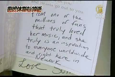 【新唐人亞太台2012年2月13日訊】第54屆葛萊美獎頒獎前夕,流行樂壇一代巨星惠妮休斯頓星期六(11號)突然去世,讓音樂界的同仁和歌迷深感悲痛。惠妮休斯頓的家鄉–美國紐澤西州的紐瓦克,更是籠罩在對惠妮休斯頓的懷念之情。