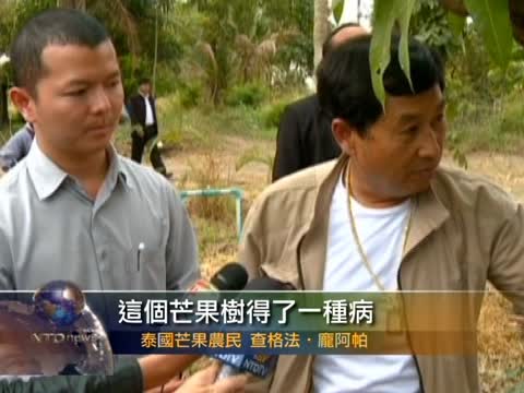 泰國芒果農民查格法•龐阿帕(Chakkraphat Pongopas):「這個芒果樹得了一種病,芒果樹的膠會不停的流會裂開,裂開之後這棵芒果樹會死掉,大家看到已經使用天然植護液後膠已經不流了,如果收到成果是新皮會長出來舊皮會換掉,用了之後這棵芒果樹本來快要枯死了,已經開花了,大概試用了一個月。」