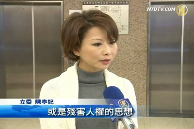 立法院通過人權決議的提案立委陳亭妃表示:「我們要求這些已經迫害人權的相關高官,不能放行,不能讓他進到台灣來,這五百人來到處逛,到處逛我們又沒有辦法控制他的行蹤,到底會不會去散發,這樣子一個統派思想,或是殘害人權的思想,我們有很大的疑慮。」