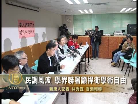 【新唐人2012年2月14日訊】香港浸會大學草草完成民調事件的調查報告,引起多個團體不滿。香港教育協會等團體聯署聲明,呼籲學界一起對抗白色恐怖,捍衛學術自由。
