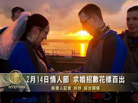【新唐人2012年2月14日訊】2月14日是情人節,許多人選擇在這一天以特別的方式完成婚姻大事。在澳大利亞,一對情侶選擇在134公尺高的悉尼港灣大橋(harbour bridge)上,舉辦獨樹一幟的婚禮。