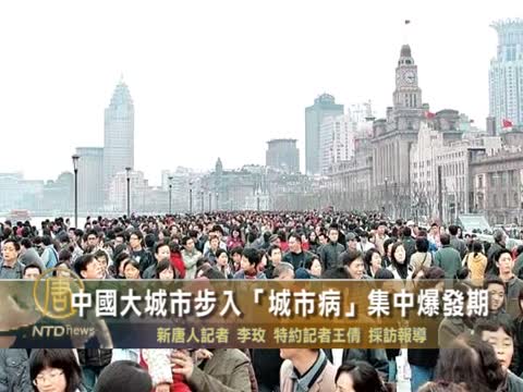 【新唐人2012年2月16日訊】《國際城市發展報告2012》,稱中國大型城市正步入「城市病」集中爆發期。上海社會科學院城市與區域研究中心秘書長屠啓宇表示,中國城市發展太快,城市承載力下降,在城市的規劃、建設、管理都落後的情況下,「城市病」集中爆發,例如:交通,住房等問題。