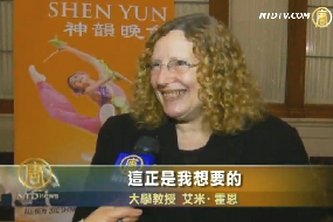 教師謝麗兒.盧福肯:「我想神韻的色彩和舞蹈動作對她身體有好處。她來了,非常愉快,非常喜歡。我也非常喜歡。」