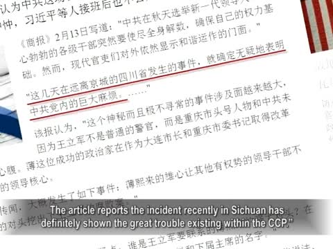 《德國之聲》發表標題為「中共內鬥激烈 改革希望不大」的文章。其中寫道:這幾天在遠離京城的四川省發生的事件,確定無疑的表明中共黨內的巨大麻煩。……」