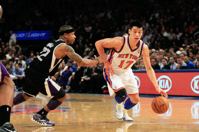 穿著「17號」球衣的林書豪吸引了大批粉絲,也讓尼克斯隊的票價水漲船高。(Chris Trotman/Getty Images)