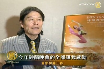 畫家伊籐三春:“當我看懂了演出的內涵時,我的震動是強烈的。今年神韻晚會的全部讓我感動。事理呢,正的就是正的,就是應該去喚起(世人的良知),這才是要做的。”