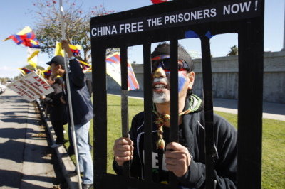 除法輪功學員外,抗議團體中還有海外藏人、民運團體、和婦女權利團體等。