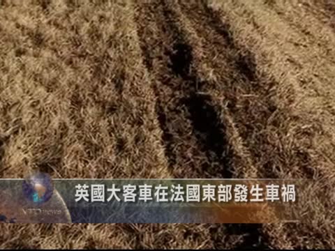 【新唐人2012年2月20日訊】一輛載有幾十名英國遊客的客車星期天上午在法國東部的夏隆-香檳泉市(Chalons-en-Champagne)附近衝出公路翻入路邊溝渠,造成一名乘客死亡,包括司機在內23人受傷,其中5人傷勢嚴重。傷員正在就近得到救治。當時客車正在從意大利返回英國伯明翰的途中,雖然下雨但路面情況良好。警方表示車禍原因尚在調查之中。
