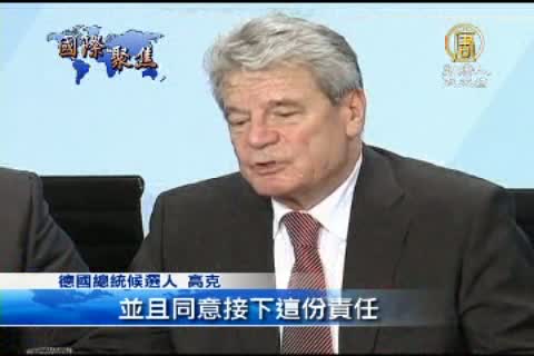 【新唐人亞太台2012年2月22日訊】前德國總統伍爾夫因醜聞纏身,17日正式宣布請辭。19日,總理梅克爾宣布,將支持反對派的東德人權鬥士高克,為下一任總統候選人。梅克爾表示,高克擁有執政聯盟和在野黨的支持,是一個相當優秀的人選。