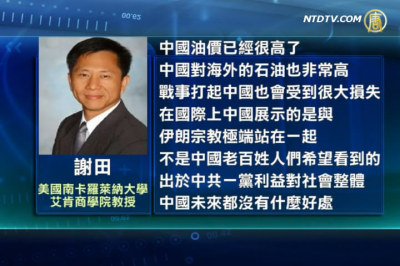【新唐人2012年2月23日訊】伊朗擴大石油禁運對油價造成影響,也已影響到美元的價格、黃金的價格。在美國零售市場上汽油的價格已經接近4美元的水平。伊朗核武器的危機和西方、和以色列的對峙還在升高,謝田教授認為:一旦戰事打起來,石油價格可能會大幅上升,估計高位油價會持續。
