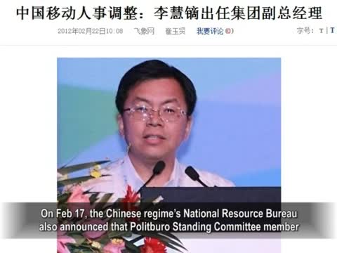 2月17號,中共國資委也公布了中共政治局常委李長春之子李慧鏑,出任「中國移動集團」的副總經理。李慧鏑此前擔任集團的總裁助理。
