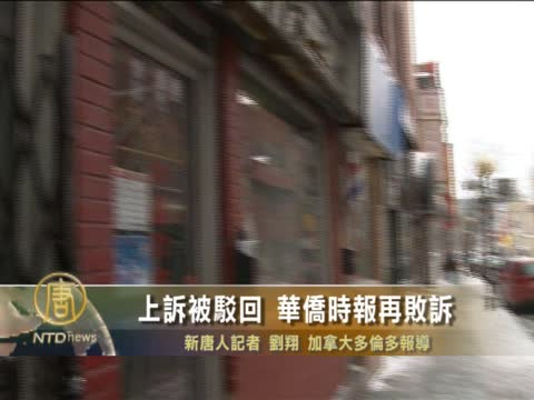 【新唐人2012年2月24日訊】今天上午9點半,加拿大魁北克上訴法庭駁回華僑時報和發行人周錦興控告大紀元時報誹謗的上訴,並宣佈維持魁省高等法院的判決。