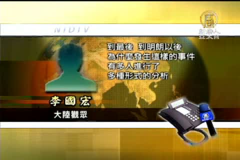 大陸觀眾 李國宏:「第一個新唐人在報導有關王立軍事件上快,這是想不到的快;第二個,信息量大、信息量多,找了不同的人士對王立軍到美國領館當時發生的狀況進行了解。以及發生以後,他這個發展趨勢進行分析;到明朗以後,為什麼發生這樣的事件?有多人進行了多種形式的分析。觀點都非常新穎,讓人有想像的空間,這是做得非常非常好的地方。」