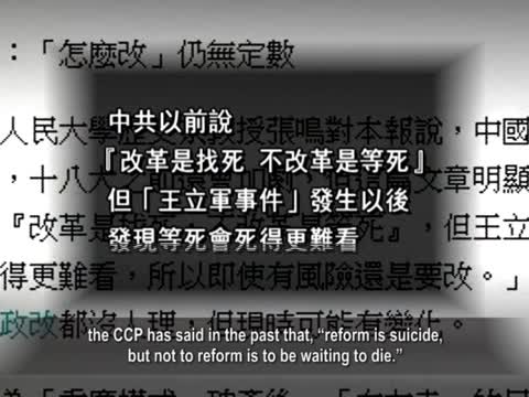 【新唐人2012年2月25日訊】重慶「王立軍事件」引爆中共政權危機。中共喉舌《人民日報》最近發表文章聲稱,「改革有風險,但不改革黨就會有危險」。有專家指出,中共目前進退兩難,中共高層領導人意識到不改革,將會「死得很難看」,但中共鼓吹的這種所謂「改革」,不是真正意義上的政改,民衆應該放棄對共產黨的幻想。