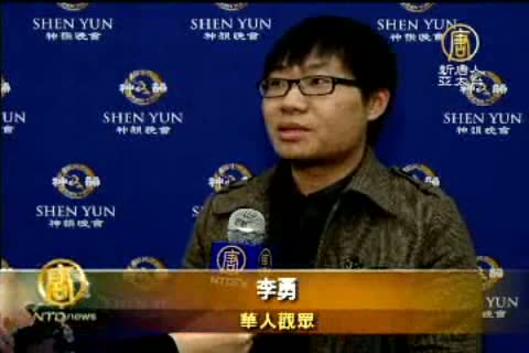 「就是受到真正的這種中國傳統文化的,看到這種場面受到特別大的衝擊,並且舞蹈編排都特別有創意,把這些他們那種生活特別藝術化的表現出來讓我們都非常特別受感動,並且也很期待下一次神韻的演出,我還會把這神韻介紹給我的朋友和同學和家人。」