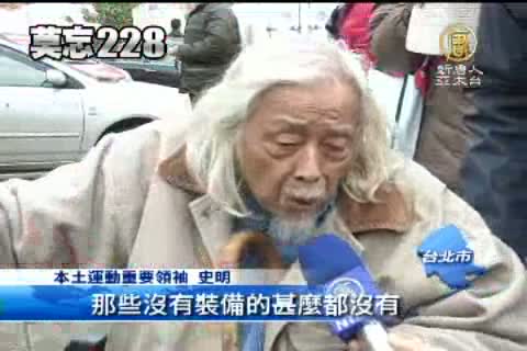 本土運動重要領袖 史明:「絕對不能忘記,台灣人如果忘記228,台灣人沒有前途了,何況你身為一個人,那些沒有裝備的,甚麼都沒有,他用機關槍這樣做,這件事情怎樣,現在世人也行不通。」