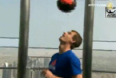 網球天才跑到迪拜塔的第124層顛足球,招式還不賴,真是讓人刮目。