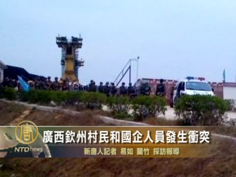 【新唐人2012年2月28日訊】2月26日,廣西欽州康熙嶺鎮團和村數百名村民,因租地和農田排水、污染等問題,與大型國企中鐵十六局屬下的製梁場發生衝突。衝突中4、5位村民被打傷,其中包括一名80多歲的老人。當局出動數十名邊防武警介入。