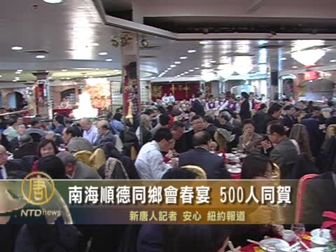 【新唐人2012年3月1日訊】紐約華埠南海順德同鄉會2月29日舉行春宴,500名會員和嘉賓濟濟一堂,共賀龍年的到來。請看本臺記者的報導。