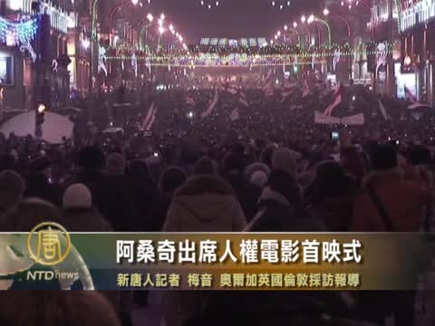【新唐人2012年3月7日訊】3月初就在歐盟把160名白俄羅斯官員記入違反人權的黑名單之際,英國倫敦老維克隧道(Old Vic Tunnel)劇院舉辦了記錄片《歐洲最後的獨裁者》首映式,使2010年備受爭議的白俄羅斯總統選舉以來的人權問題再次受到關注。維基解密創辦人阿桑奇和著名英國演員也到場對影片表示支持。
