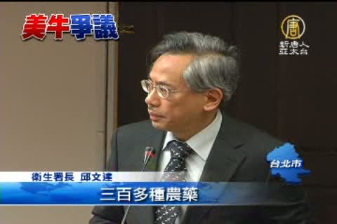 【新唐人亞太台2012年3月7日訊】新聞頭條,仍舊帶您鎖定,持續延燒的美牛爭議。儘管日前召開的幾次美牛專家會議,對於解禁瘦肉精都沒有共識,不過政府還是傾向考量有條件開放瘦肉精美國牛肉。今天(7日)衛生署長邱文達在立法院備詢 時,對於是否要訂出瘦肉精殘留量,沒有正面回應,只是多次強調,因為是參考專家的意見,才會做出有條件開放的結論。