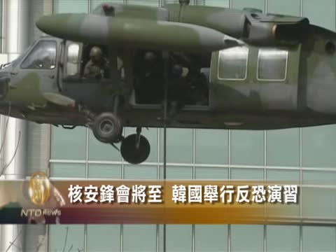 【新唐人2012年3月9日訊】2012年核安全峰會即將在韓國召開,星期五(3月9日)在首爾舉行反恐演習,將近150名軍人、消防員、政府官員和民眾現場模擬 如果遭遇爆裂物或生化攻擊時將如何應對。