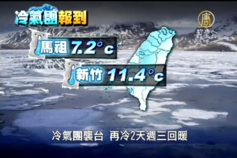 【新唐人亞太台2012年3月11日訊】受到強烈大陸冷氣團來襲,北部濕冷天氣至少還會持續2天,氣溫下探10度,星期三才會明顯回暖,由於這波冷氣團夾帶水氣,氣象局表示,不排除高山有降雪機會。